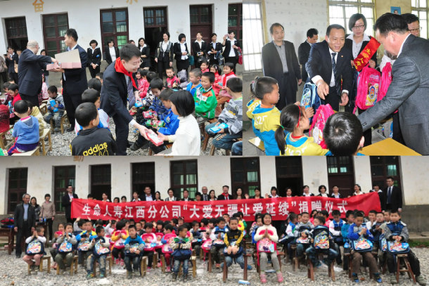 4月9日至10日,生命人壽江西分公司分別在新余市北港教學點、萍鄉市蓮花縣洞背小學舉行“大愛無疆、讓愛延續”助學捐贈儀式。