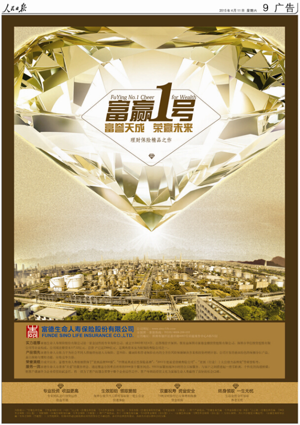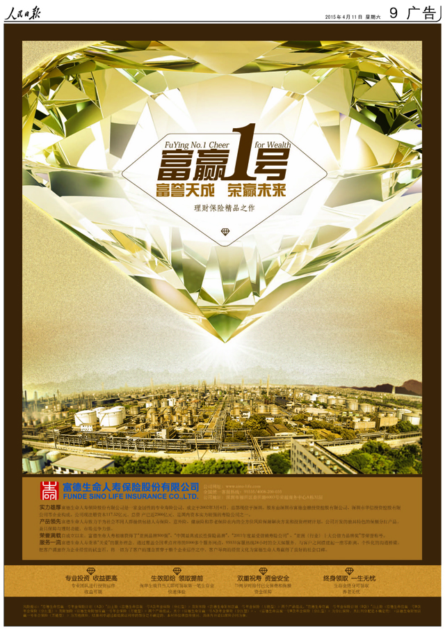 富譽天成,榮贏未來—人民日報權威刊登“富贏一號”產品上市廣告
