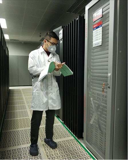 佩戴口罩、身著白色防靜電工作服巡檢設(shè)備的同事,看著這身裝扮就讓人安心。(總公司 供圖)