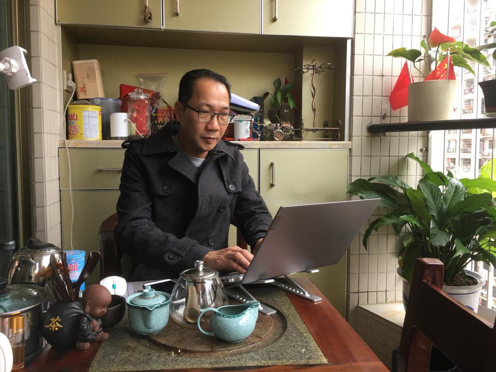一壺清茶、幾株綠植,伴我陽(yáng)臺(tái)辦公。(廣東分公司 供圖)