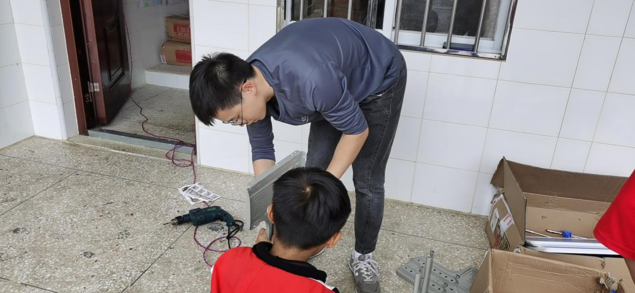 此次公益活動,“小海豚計劃”的志愿者們不僅和學校師生一起組裝課桌椅、書柜,對捐贈的圖書進行分類擺放,還給孩子們上了一堂神奇的科學實驗課和一堂趣味盎然的戶外運動課,孩子們在課堂上玩得不亦樂乎。