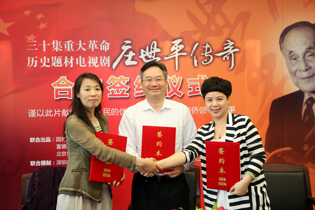 6月2日,恰逢著名潮汕籍愛(ài)國(guó)僑領(lǐng)莊世平逝世八周年紀(jì)念日,反映他傳奇一生的三十集重大革命歷史題材電視劇——《莊世平傳奇》,在深圳富德生命人壽總部簽署聯(lián)合拍攝合作協(xié)議。該劇由富德生命人壽全程贊助、深圳市華影文化傳播有限公司和北京世紀(jì)伙伴文化傳媒股份有限公司聯(lián)合制作。富德生命人壽董事總經(jīng)理張漢平先生、華影文化傳播董事長(zhǎng)曾映麗女士和北京世紀(jì)伙伴代表共同簽署了協(xié)議,深圳市原市委副書(shū)記莊禮祥等嘉賓出席見(jiàn)證了簽約儀式。出品三方共同表示,將以此劇緬懷莊老的動(dòng)人事跡,精心打造成為一部響應(yīng)習(xí)總書(shū)記文藝工作座談會(huì)講話號(hào)召,弘揚(yáng)愛(ài)國(guó)主義精神主旋律的傳世力作。