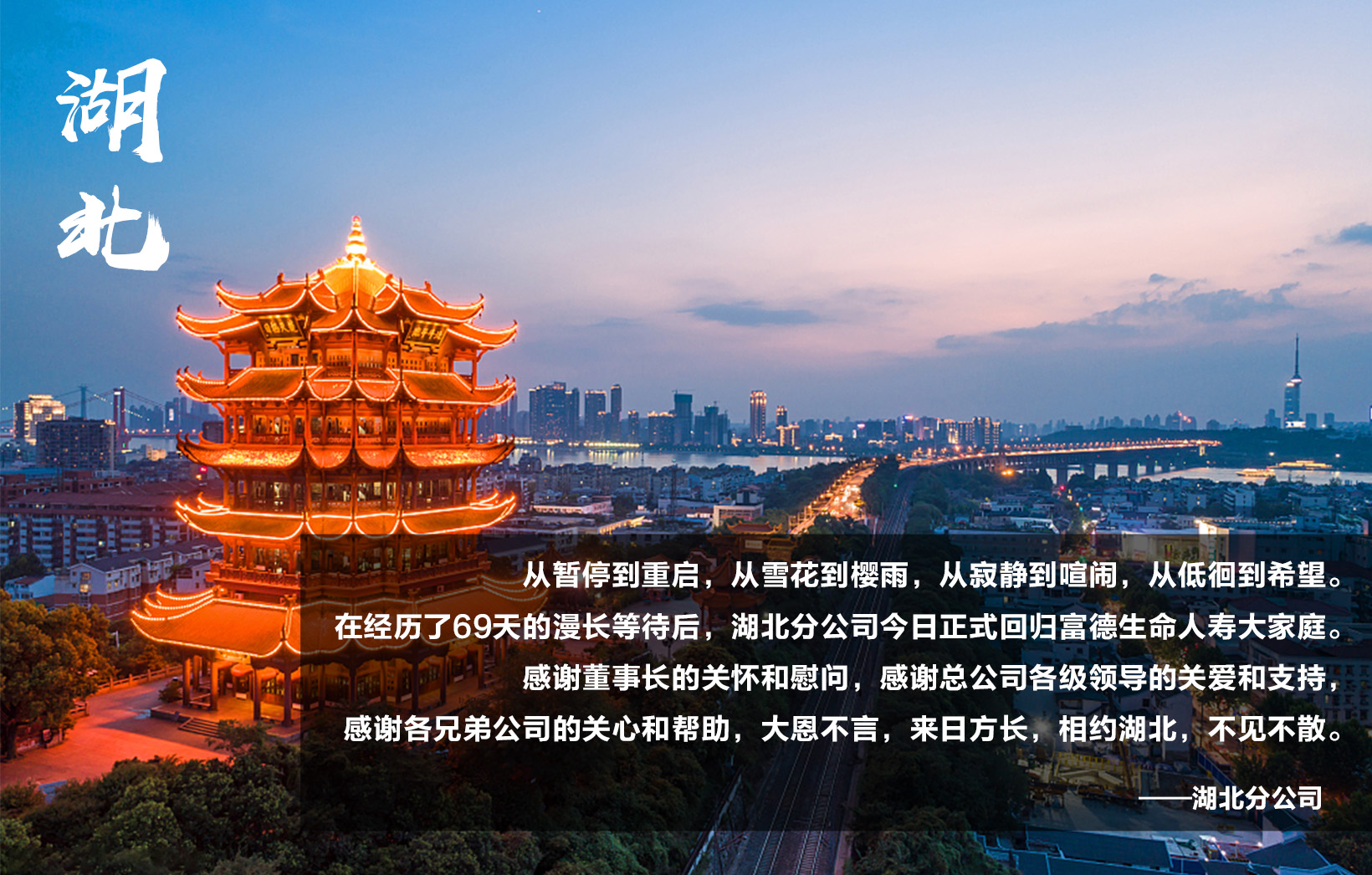 4月1日,湖北分公司正式開啟現(xiàn)場復(fù)工!富德生命大家庭熱烈歡迎湖北分公司歸隊(duì)!