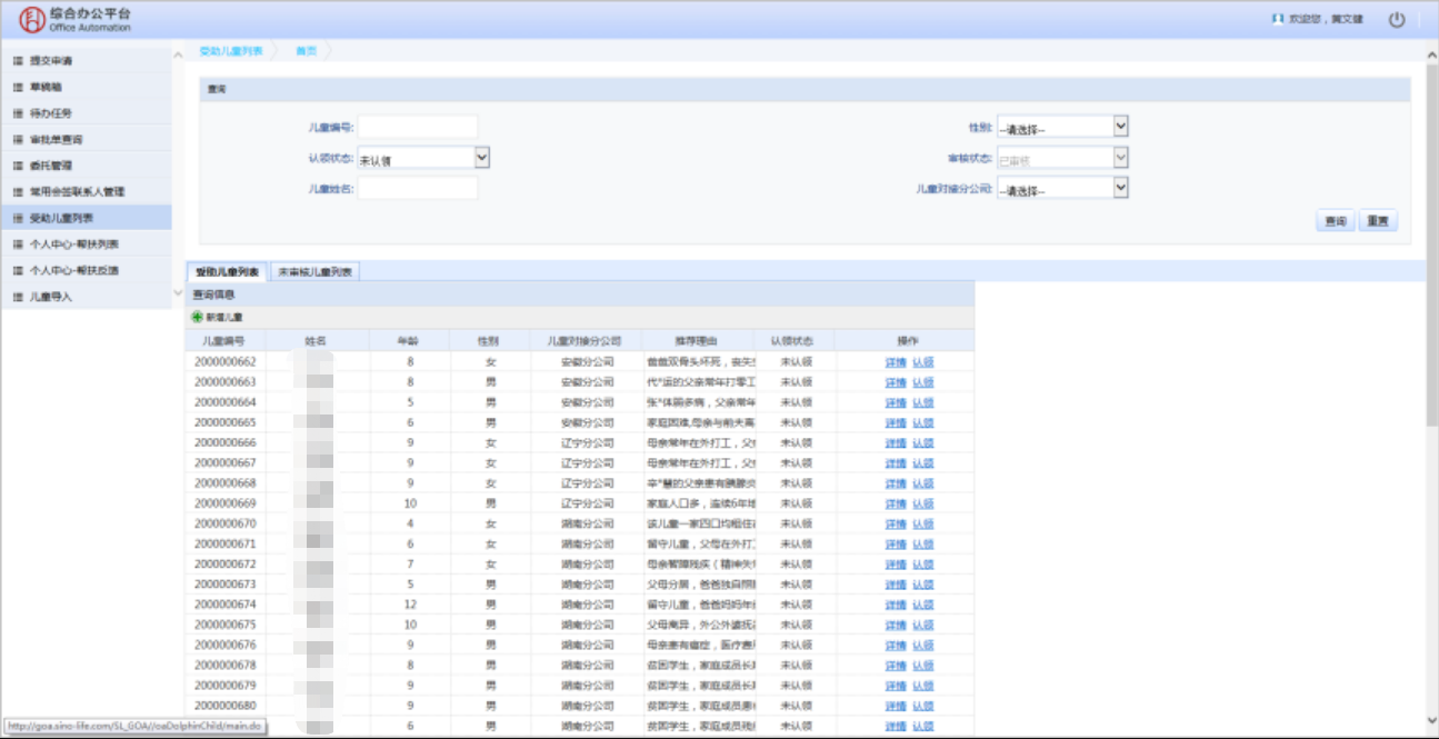 4月29日,2020年富德生命人壽“幫扶小海豚”系統(tǒng)在公司OA信息管理平臺(tái)正式上線啟用,北京分公司的一名員工通過(guò)系統(tǒng)認(rèn)領(lǐng)幫扶了一位困難兒童。自即日起,總分公司內(nèi)勤員工均可在線認(rèn)領(lǐng)和幫扶困難兒童。