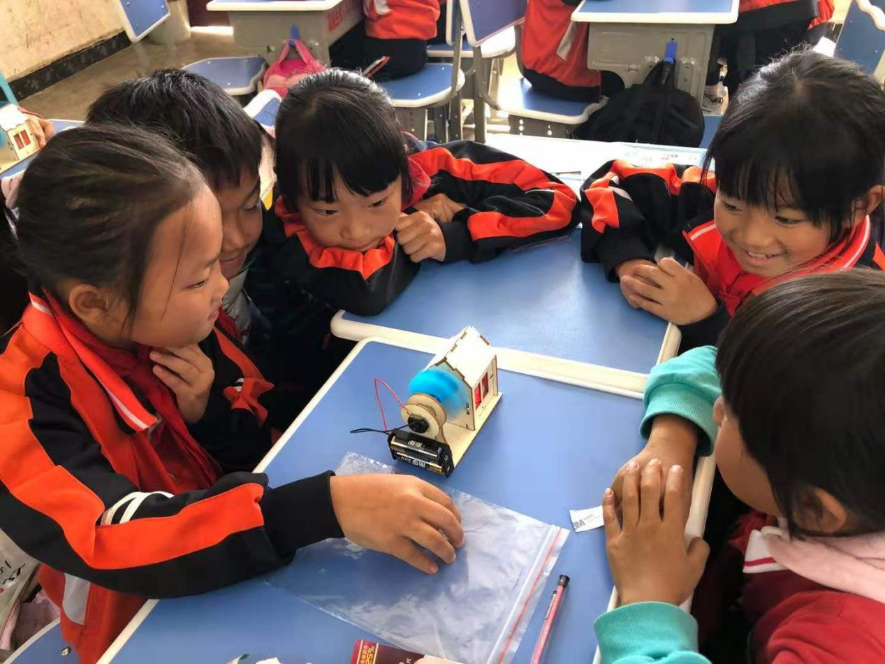 此次公益活動,“小海豚計劃”的志愿者們不僅和學校師生一起組裝課桌椅、書柜,對捐贈的圖書進行分類擺放,還給孩子們上了一堂神奇的科學實驗課和一堂趣味盎然的戶外運動課,孩子們在課堂上玩得不亦樂乎。