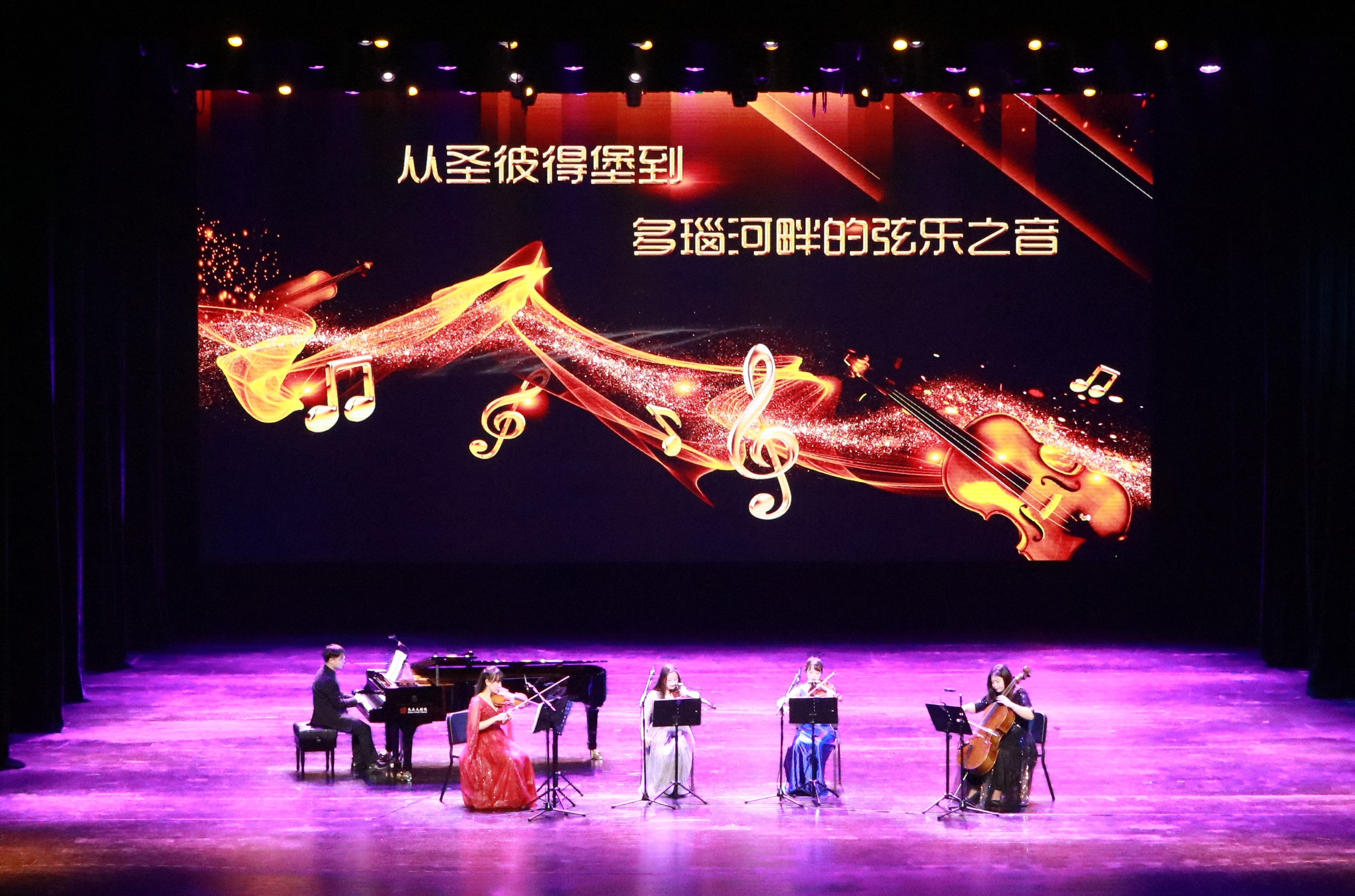 會(huì)場(chǎng)內(nèi),弦樂(lè)五重奏音樂(lè)會(huì)在夢(mèng)幻、奇妙的《胡桃?jiàn)A子》中緩緩拉開(kāi)序幕。從活潑歡快的匈牙利舞曲到優(yōu)美舒展的《多瑙河之波圓舞曲》,從柴可夫斯基到伊萬(wàn)諾維奇,再到莫扎特,音樂(lè)長(zhǎng)河自異域緩緩流淌,為觀眾送上一場(chǎng)極致浪漫的聽(tīng)覺(jué)盛宴。一首首經(jīng)典金曲,帶著喜悅美妙的音符,為客戶(hù)送去新春祝福。